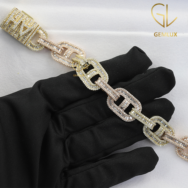 Iced Out Baguette Hip Hop Jewelry Link Chain Bracelets For Men Women